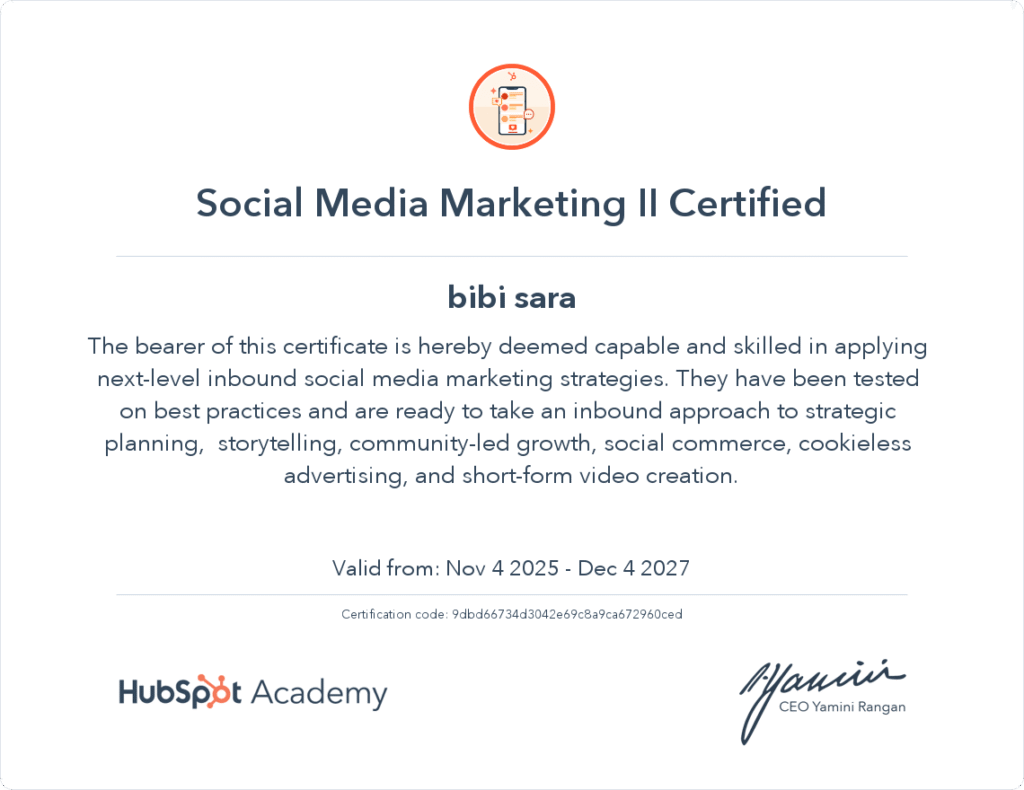“I’m Bi Bi Sara, a Digital Marketing Enthusiast passionate about creating impactful campaigns and content. I work with Canva and AI tools for video editing, run SEO optimization strategies, design websites on WordPress, and manage social media platforms. I understand Google Ads, Facebook Ads, email marketing, and lead generation campaigns.”